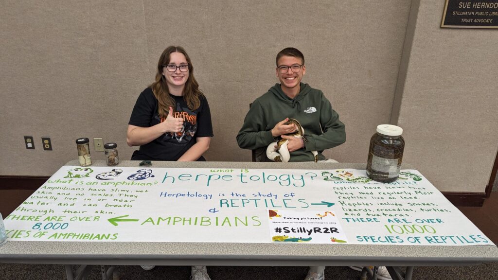 WEEOLab students, herpetology class student volunteers, and their herp pals had an event at the Stillwater public library -430 interested people showed up to learn about and interact with amphibians and reptiles!